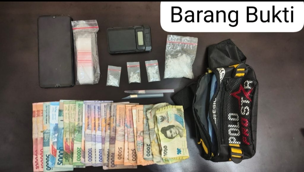 Setelah memastikan keberadaan target, petugas kemudian melakukan penangkapan terhadap pelaku. Saat dilakukan penggeledahan, ditemukan sejumlah barang bukti berupa narkotika jenis sabu dengan total berat brutto 16,99 gram yang terdiri dari satu plastik klip besar dan tiga plastik klip sedang. Selain itu, turut diamankan berbagai perlengkapan yang diduga digunakan untuk aktivitas peredaran narkotika, antara lain plastik klip kosong, pipet berbentuk skop, timbangan elektrik, tas sandang, satu unit handphone, serta uang tunai sebesar Rp526.000.